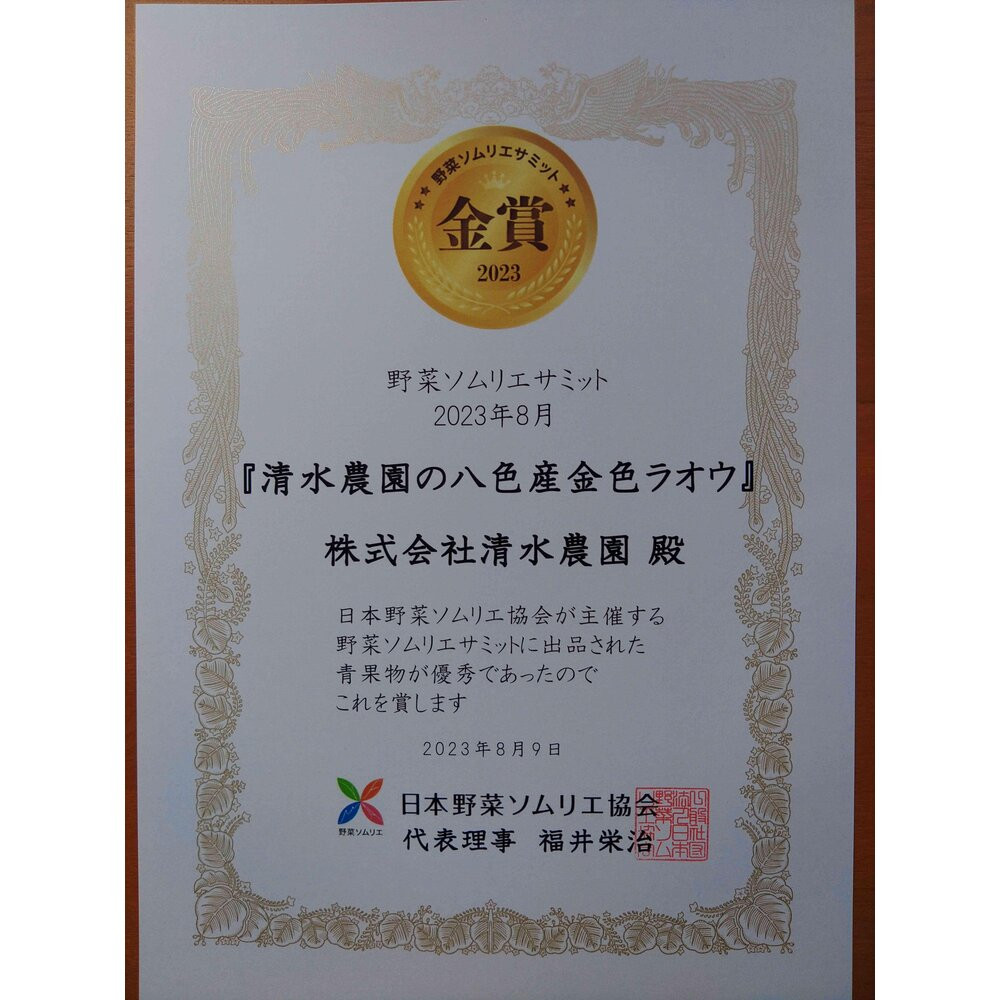 - 2026年7月下旬から発送予定 野菜ソムリエサミット金賞受賞 「清水農園の八色産金色羅皇」(1玉)
