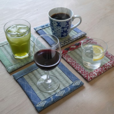 大阪府和泉市 国産 コースター4個セット 天然イ草 畳 手作り 【色・柄ランダム】【1678987】