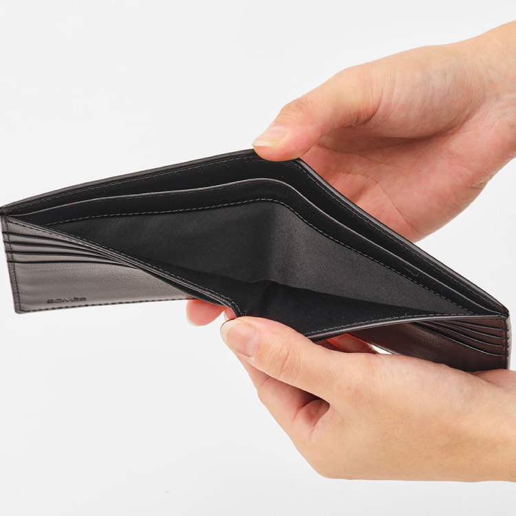 キプリス本革製コードバンxシラサギレザー二つ折り財布 カラー:ブラックxネイビー【kt026-014-2】