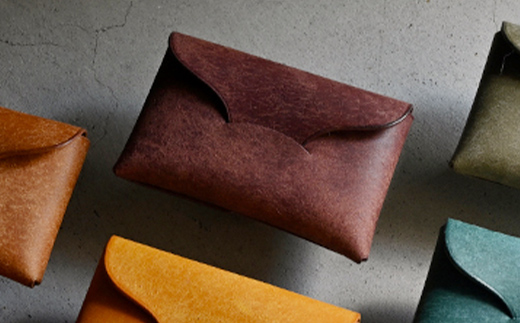 - 封筒のような プエブロレザーの名刺も入るシームレスカードケース 【タバコ(赤茶系)】 F5J-1036