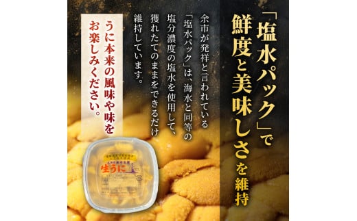 【先行予約:2026年6月以降発送】北海道余市産 極上 塩水うに キタムラサキウニ 200g 100g × 2パック 雲丹 ウニ 塩水パック 漁期限定 高級 希少 あっさりとした味わいと上品な甘み