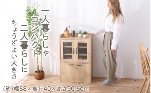 【3色から選べる】【完成品】 キッチン収納 ミニカップボード ロータイプ 高さ90cm(ナチュラルオーク)
