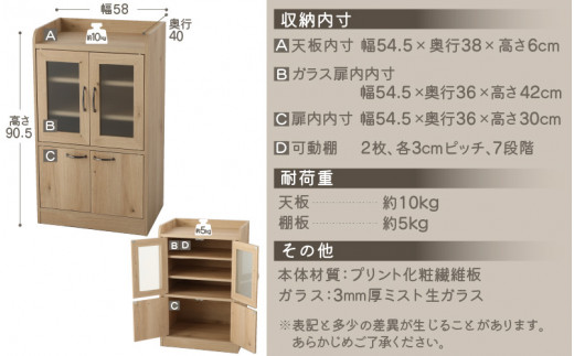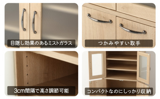 - 【3色から選べる】【完成品】 キッチン収納 ミニカップボード ロータイプ 高さ90cm(ナチュラルオーク)