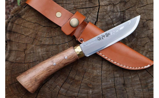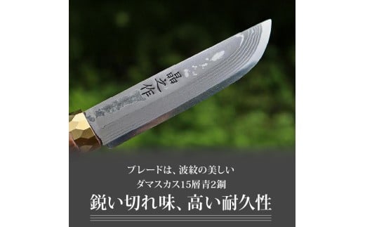 土佐渓流ナイフ105 真鍮丸輪 全曇 ダマスカス15層青紙2号鋼 | ナイフ キャンプ アウトドア 打刃物 土佐 鉈 剣鉈 なた 職人 山林 狩猟 熊 刃物 薪割り ハンドメイド 釣り 伝統 工芸 高知県 南国市