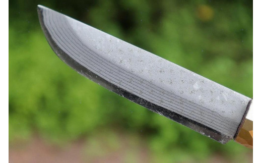 - 土佐渓流ナイフ105 真鍮丸輪 全曇 ダマスカス15層青紙2号鋼 | ナイフ キャンプ アウトドア 打刃物 土佐 鉈 剣鉈 なた 職人 山林 狩猟 熊 刃物 薪割り ハンドメイド 釣り 伝統 工芸 高知県 南国市