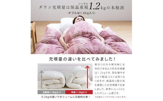- 【2025年11月お届け】【増量1.2kg】羽毛布団 ハンガリーホワイトダック93% DP400 シングル(ベージュ:CH92205柄)_Qc073-be-2511