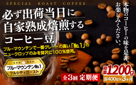 - E272z 【3回定期便】必ず出荷日に自家熟成焙煎 ブルーマウンテンNo.1豆(400g) コーヒー豆【SASEBO Coffee TOMINAGA】人気 新鮮 挽きたて 高級コーヒー 本格
