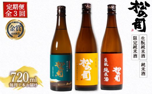 定期便 日本酒 松の司 純米酒 3本 ( 1種類 × 3回 ) 720ml 「純米酒」 「生酛純米酒」 「限定純米酒」 父の日 金賞 受賞酒造 飲み比べ 【 お酒 日本酒 酒 松瀬酒造 人気日本酒 おすすめ日本酒 定番 御贈答 銘酒 贈答品 滋賀県 竜王町 ふるさと納税 父の日 】
