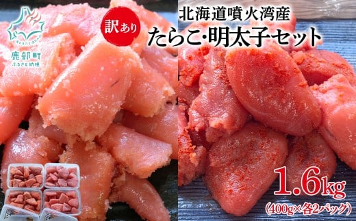北海道噴火湾産 訳あり たらこ・明太子セット 切子 1.6kg(400g×各2パック) ご飯のお供 冷凍