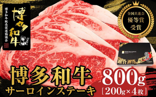 博多和牛サーロインステーキ 800g(200g×4枚)【全国共進会優等賞受賞】【博多和牛 和牛 牛 肉 お肉 サーロイン ステーキ 受賞 贅沢 人気 食品 オススメ 送料無料 福岡県 筑前町 AL008】