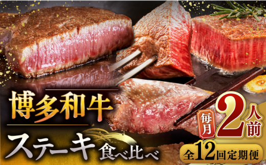 - 【全12回定期便】博多和牛 食べ比べ ステーキ 定期便 ( サーロイン / ヒレ / シャトーブリアン )毎月200g×2枚お届け! ▼ 牛肉 肉 にく 希少部位 希少肉 レア ステーキ セット 高級 和牛 記念日 定期便 食べくらべ 桂川町/久田精肉店 [ADBM141]