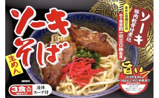 【沖縄直送】手打ち生麺 沖縄そば&軟骨ソーキセット スープ付き 3食箱入×2P 合計6食 [うちなーむん 沖縄県 伊江村 ie47bfw150000] シンコウ ソーキそば