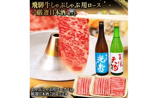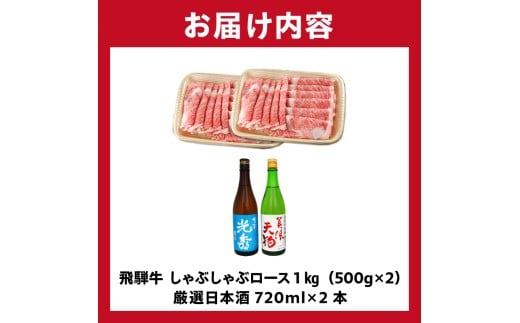 8-3 飛騨牛 しゃぶしゃぶロース1㎏(500g×2) + 厳選日本酒720ml×2本【岐阜県 可児市 酒 日本酒 飲料 地酒 アルコール 手作り ギフト プレゼント お祝い 肉 牛肉 】