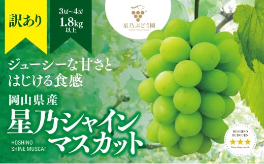 訳あり星乃シャインマスカット(岡山県産) 3~4房(1.8kg以上)【1626442】