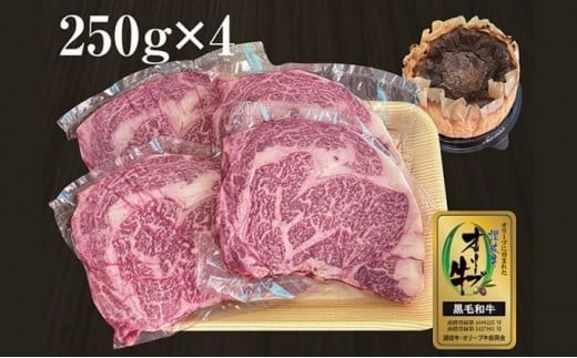 - ステーキ 250g 4枚 チーズケーキ バスク バスクチーズケーキ 牛 牛肉 和牛 黒毛和牛 肉 ロース ロースステーキ オリーブ牛 ステーキ肉 金ラベル 贈答用 プレゼント ごちそう 記念日 香川県 丸亀市