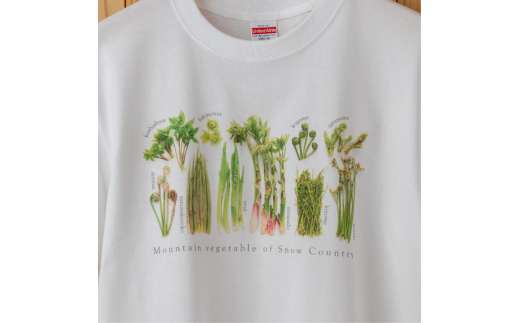 0337世界で唯一!着る山菜!!【山菜図鑑Tシャツ・白】綿100% XLサイズ