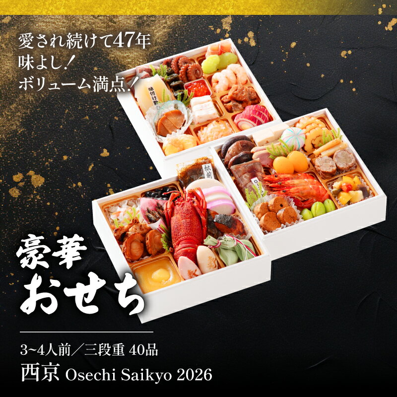- 【ふるさと納税】おせち料理 三段重 西京 3〜4人前 冷凍 | おせち お重 三段重 豪華おせち 豪華 正月 お正月 新年 和風 洋風 お取り寄せ グルメ 山口 宇部 鶏肉 牛肉 豚肉 いか えび あわび いくら 山口県 宇部市