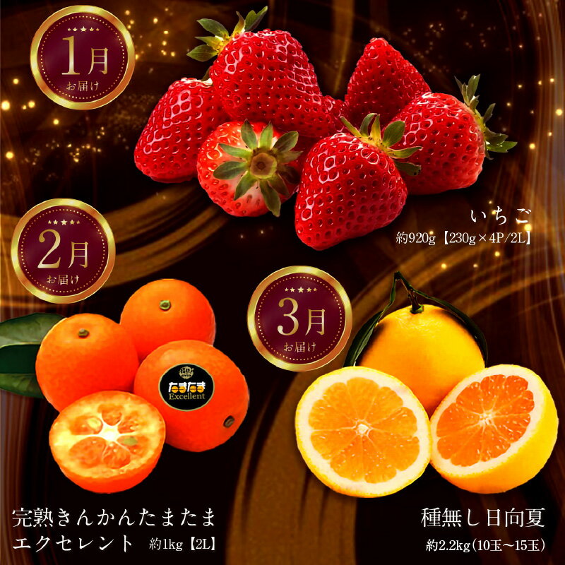 【ふるさと納税】《2026年発送先行予約》【数量・期間限定】青果店厳選!「3ヶ月お届け!くだもの定期便Vol.3」 いちご きんかん たまたま 日向夏 完熟きんかん 種無し日向夏 果物 フルーツ 旬 果実 厳選 青果 お取り寄せ グルメ おすすめ 人気 ギフト 贈答 宮崎県 宮崎市