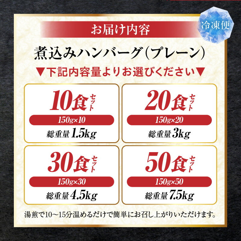 - 【ふるさと納税】【選べる内容量】鉄板焼き 煮込みハンバーグ 濃厚デミグラスソース 10食~50食セット ハンバーグ 煮込み 鉄板焼き 香ばしい 柔らか 濃厚 肉 お肉 合い挽き デミソース ジューシー 冷凍 香川県 三木町 おすすめ