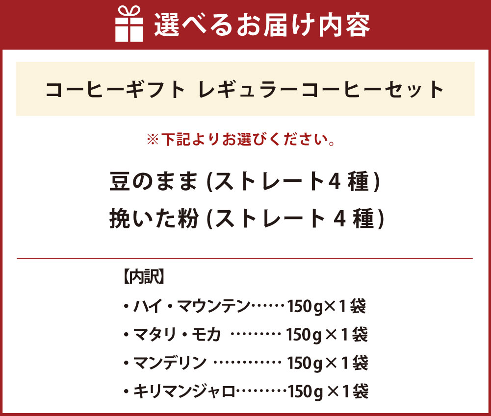 - 【ふるさと納税】コーヒー ギフト レギュラーコーヒー セット <選べる種類> ストレート 4種 計600g 豆 挽いた粉 珈琲 倉敷珈琲館 食べログ 喫茶店 名店 自家焙煎 珈琲専門店 厳選 美味しい ブレンド バランス モカ