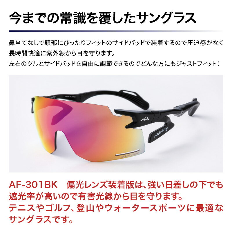 【ふるさと納税】\鯖江市レビューキャンペーン/鼻パッドのないサングラス「エアフライ」偏光レンズ スポーツサングラス ワイドビュータイプ AF-301WVモデル[G-03704] / 軽量 ジゴスペック サングラス カラーレンズ 偏光 調光 UVカット スポーツサングラス 鯖江市