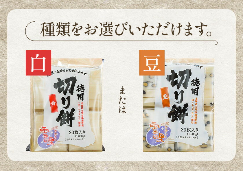 - 【ふるさと納税】徳用切りもち 1kg セット 選べる 白 or 豆 もち米の里ふうれん特産館【2025年11月中旬-2026年1月中旬頃出荷】北海道名寄市 はくちょうもち 餅 きなこ おしるこ お雑煮 磯部まき 和菓子 家庭用 国産 安心 安全