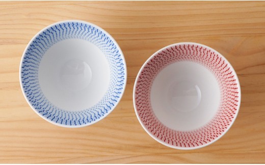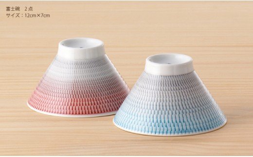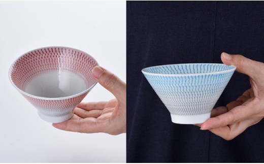 - 【波佐見焼】 富士碗 茶碗 2点セット 赤・水色 【一真陶苑】 [BB25]