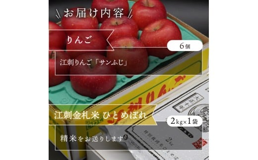 - 【精米】 お試し用江刺りんご「サンふじ」6個と 江刺金札米 ひとめぼれ2kgセット 【12~1月発送】 林檎 フルーツ 果物 米 セット 詰め合わせ [AQ075]