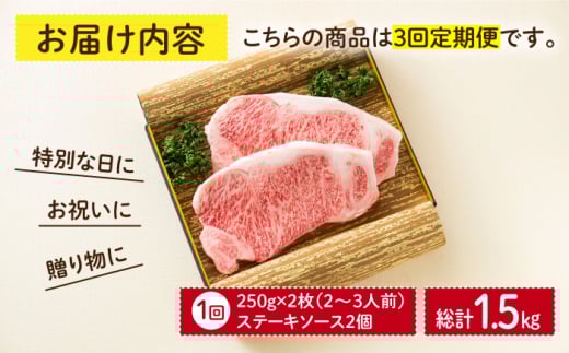 - 【3回定期便】 長崎和牛 サーロインステーキ 250g×2枚 長与町/ワタナベ商店 [ECT010] 国産 長崎和牛 和牛 サーロインステーキ サーロイン ステーキ さーろいん 2枚 牛肉 冷凍 ソース付き ギフト お祝い 定期 定期便