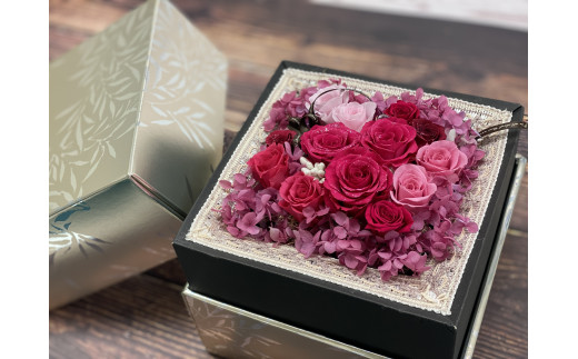 ローズピンク系 美しく咲き続けるプリザーブドフラワー ギフトボックス