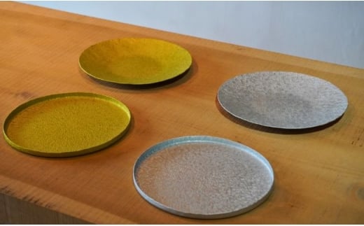 - 【金属工芸品】月色の盛皿 アルミ製 黄色 19.5cm×20.5cm×1.5cm程 1枚 軽銀草木染盛皿 キッチン 皿 食器 おしゃれ お洒落