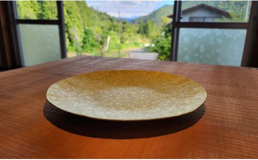 【金属工芸品】月色の盛皿 アルミ製 黄色 19.5cm×20.5cm×1.5cm程 1枚 軽銀草木染盛皿 キッチン 皿 食器 おしゃれ お洒落