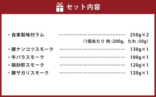 小樽 ジンギスカン +くんせいセットC 全5種 計970g ラム肉 ナンコツ 牛バラ 砂肝
