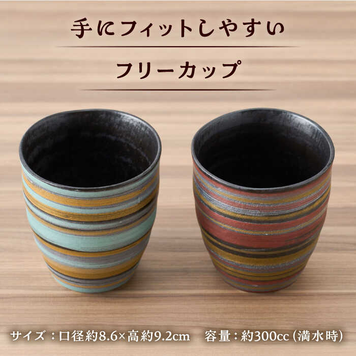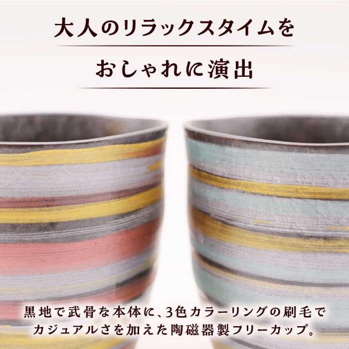 - 【ふるさと納税】【有田焼】ペア3色刷毛フリーカップ 口径約8cm / 2点 和食器 湯飲 湯呑 ゆのみ 焼酎コップ 焼酎グラス ロックグラス ビアグラス テーブルウェア / 佐賀県 / 株式会社深海三龍堂 [41APAD021]