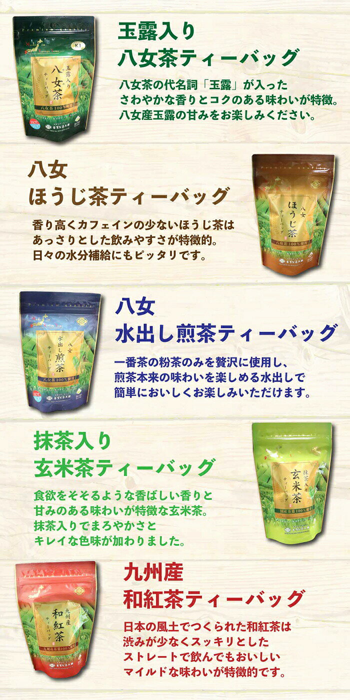 【ふるさと納税】八女茶の老舗・古賀製茶本舗 5種類のティーバッグ たっぷり75包入り 八女茶 ほうじ茶 煎茶 抹茶 玄米茶 和紅茶 お茶 茶