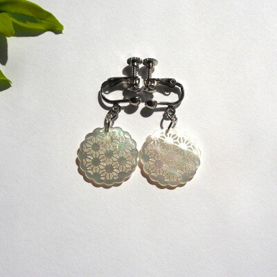 - 【ふるさと納税】白蝶貝のレース彫刻「麻」イヤリング【1237884】