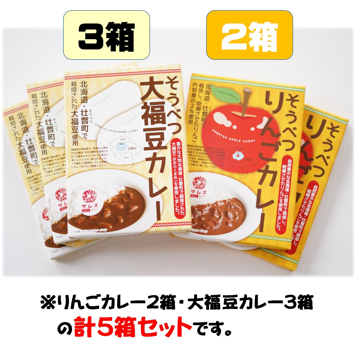 - 【ふるさと納税】≪ご当地レトルトカレー≫ りんご・大福豆カレーセット5箱(りんご2箱・大福豆3箱) 【 ふるさと納税 人気 おすすめ ランキング 北海道 壮瞥 米 レトルトカレー リンゴ 林檎 大福豆 まめ アップル 白米 大福豆 セット 北海道 壮瞥町 送料無料 】 SBTA048