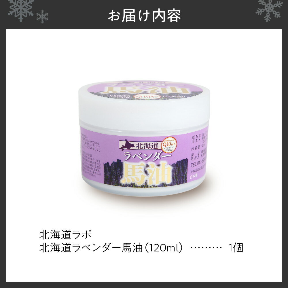 - 【ふるさと納税】 ラベンダー馬油 120ml Q10配合 馬油 ラベンダーオイル コエンザイムQ10 北海道ラボ 高濃度 保湿 ラベンダー スキンケア 美容 ハリ 潤い ギフト プレゼント 北海道 札幌市