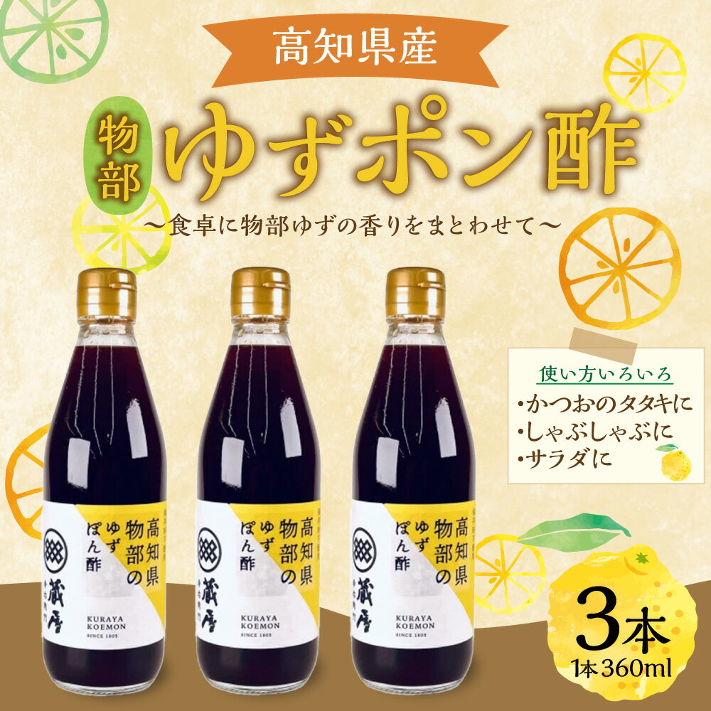 - 【ふるさと納税】物部ゆずポン酢 計1080ml(360ml×3本) 醬油 しょうゆ ゆず果汁100% 柚子 砂糖 醸造酢 化学調味料 合成甘味料 保存料不使用 調味料 料理 高知県産 国産 高知県 香美市 送料無料