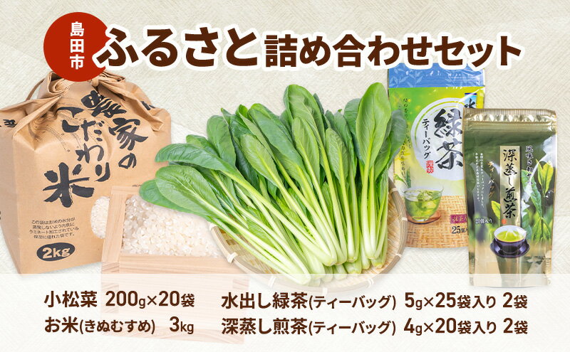 - 【ふるさと納税】小松菜 お茶 お米 詰め合わせ(きぬむすめ) セット3 野菜 やさい こまつな 旬 国産 茶 緑茶 煎茶 水出し 米 こめ コメ 産地直送 詰合せ 静岡県 島田市 お届け:2025年11月1日~2026年3月31日まで