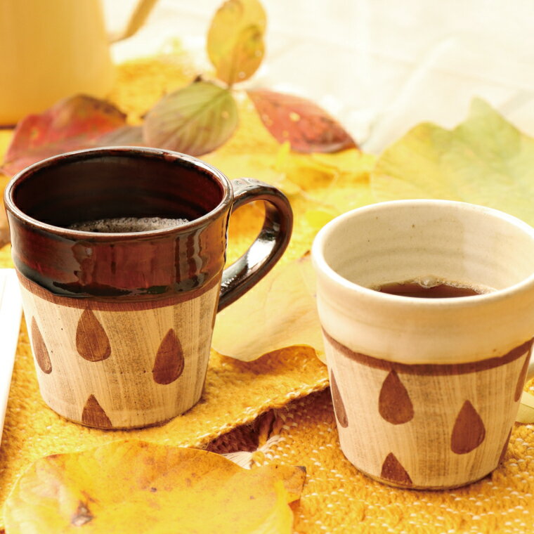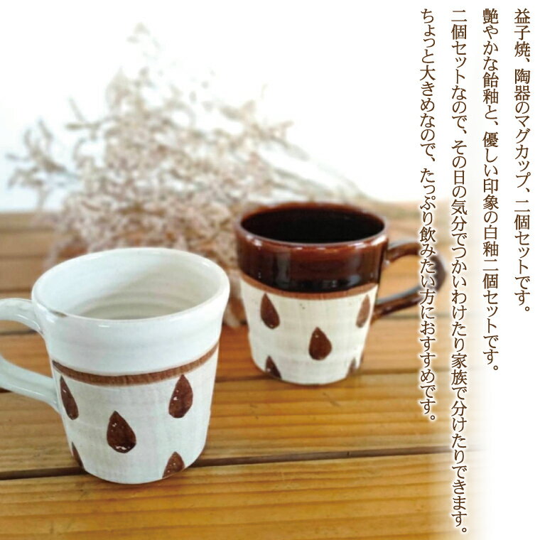 【ふるさと納税】【益子焼】しずくマグカップペア(飴釉、白釉)|カップ セット 電子レンジ可 食洗器可(BE002)