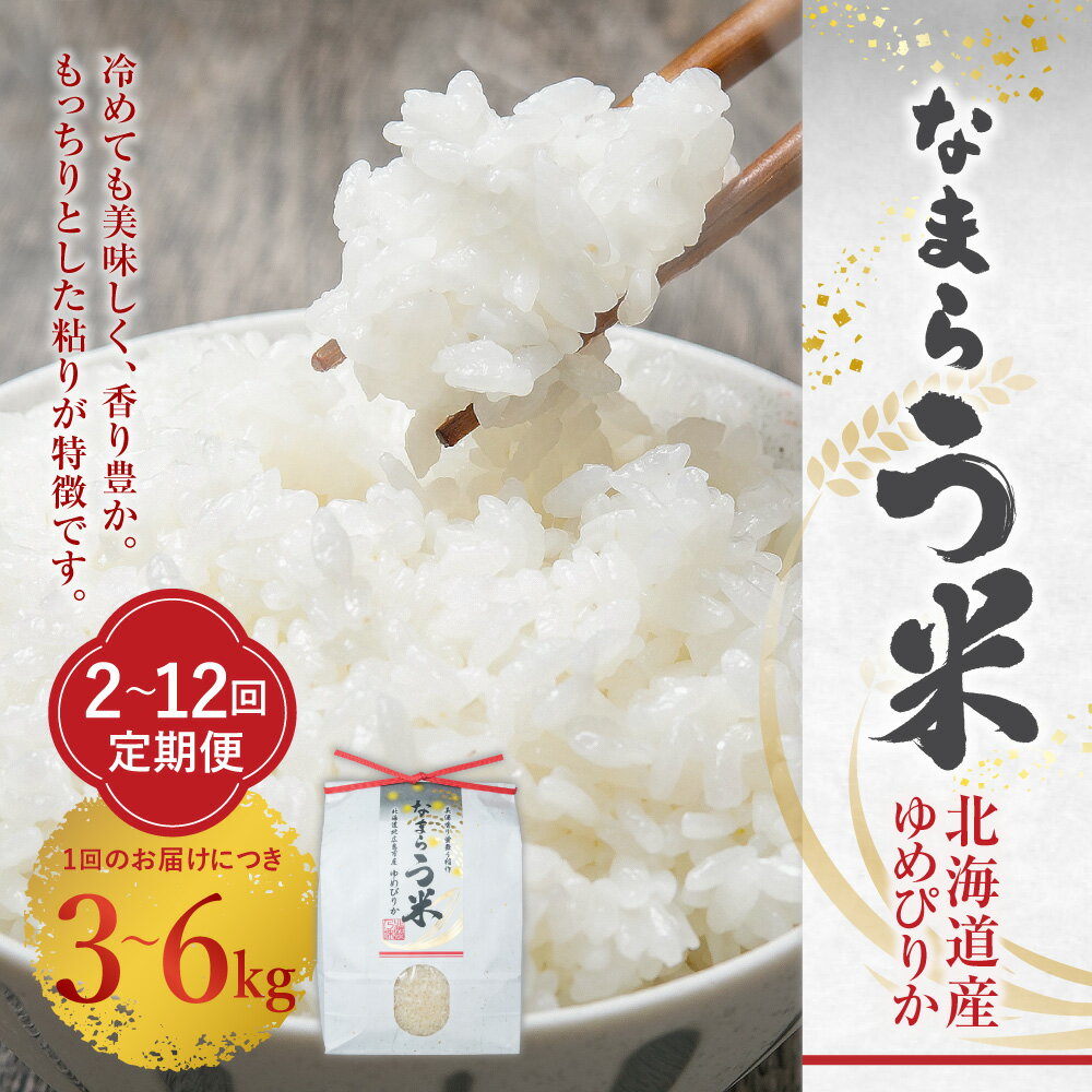 - 【ふるさと納税】【選べる容量 1回あたり 3kg(3kg×1パック)または6kg(3kg×2パック) 】【選べる定期便 2ヶ月~12ヶ月】なまらう米(ゆめぴりか)計6kg~72kg 自家製オリジナル堆肥 化学合成殺虫殺菌剤不使用 米 精米 北海道 北広島市 送料無料