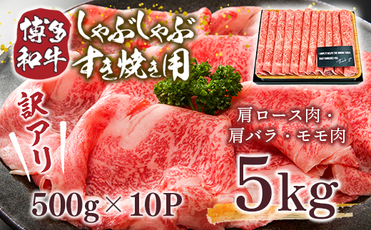 訳あり 博多和牛 しゃぶしゃぶ すき焼き 500g 10p 計5kg [MEAT PLUS 福岡県 宇美町 um40azp010022] 牛肉 肉 肩ロース 肩バラ モモ肉 バラ肉 和牛 牛しゃぶ 牛すき