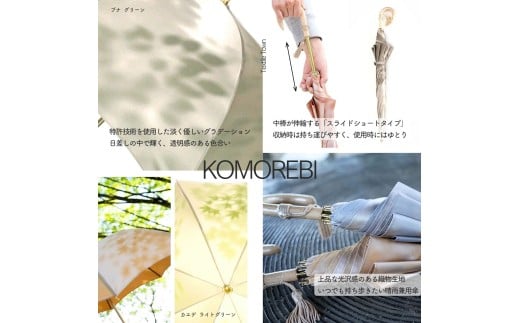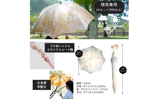高級織物傘【婦人長傘】 こもれび 晴雨兼用傘 ブナ ライトブルー 傘 レディース 槇田ブランド 葉 リーフ ナチュラル / 雨具 雨傘 日傘 軽量 親骨50cm UVカット 遮光 8本骨 手開き UV加工 送料無料 山梨県 日本製 槇田商店【n0654-03_mak】