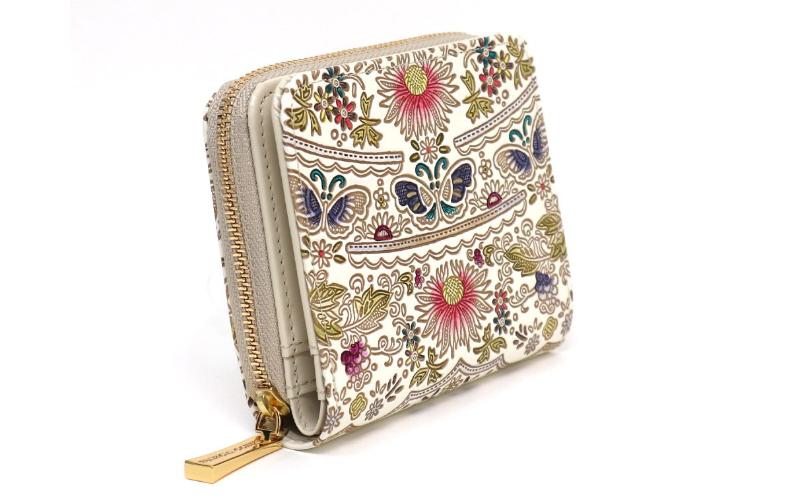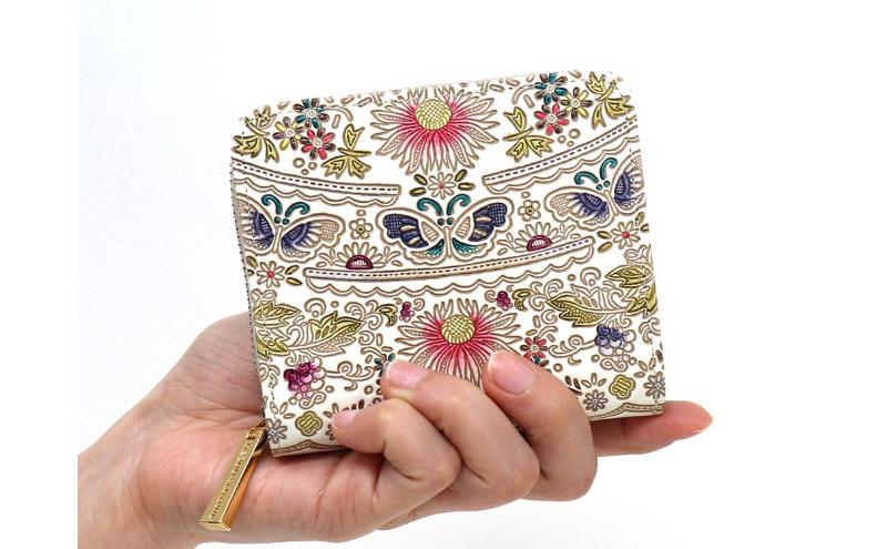 【文庫屋大関】二つ折りファスナーミニ財布 茉莉花<珊瑚>【皮革工芸品】財布 二つ折り 小物 お札 カード 小銭 コンパクト 牛革 手作り 日本製 墨田区 東京都