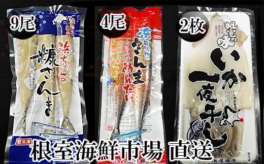 A-28260【12/10まで年内配送】 【北海道根室産】根室海鮮市場<直送>いか一夜干し2枚・さんま明太4尾・糠さんま9尾