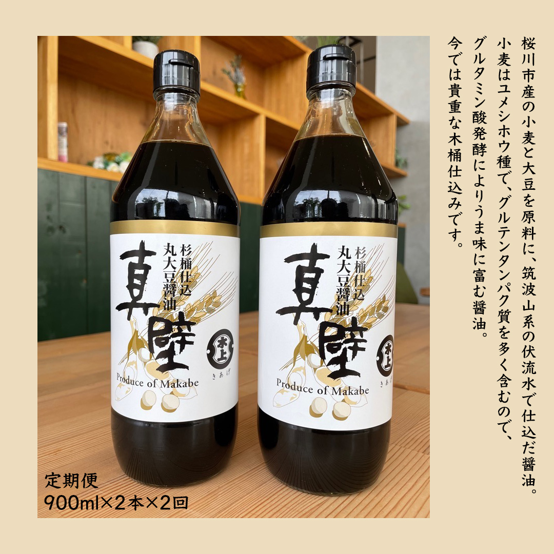 - 【 2回 定期便 】 丸大豆醤油・真壁( 900ml × 2本 × 2回 ) きあげ醤油 木桶仕込み 醤油 しょうゆ しょう油 調味料 老舗 桜川市 鈴木醸造 隔月 定期便 [EP005sa]