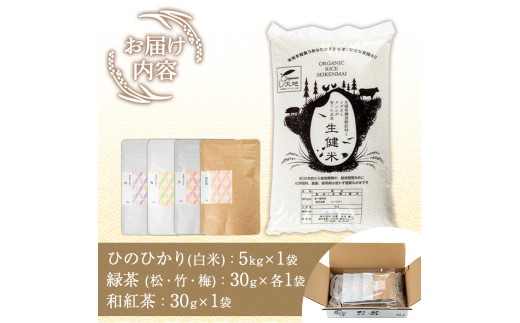 - 【数量限定】 令和7年産 ひのひかり 新米(5㎏)・お茶 ”自然のかおり” 4種(緑茶3種・和紅茶1種×各30g)の セット! 有機発酵肥料のみで育てた こだわり のお茶と お米 です! 緑茶国産 紅茶 有機栽培 ひのひかり コメ 精米 ご飯 ごはん【A-1944H】