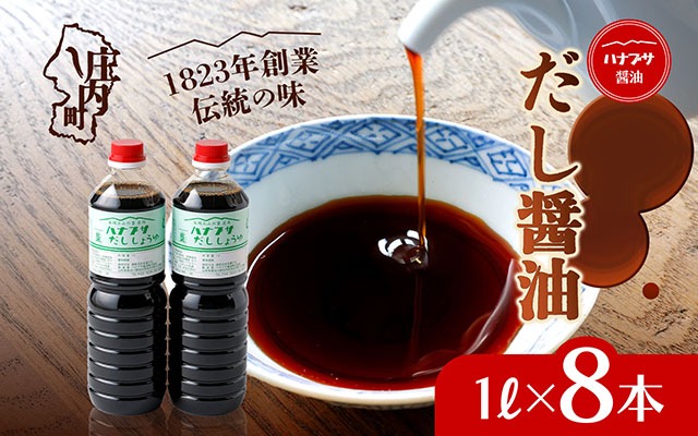 - ハナブサ醤油 だし醤油 8本セット(1L×8本)しょうゆ だし 出汁 老舗の味 国産 調味料 家庭 普段使い