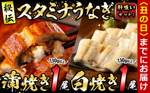 【丑の日までに配送】【数量限定】鹿児島県産!秘伝の特上スタミナうなぎ蒲焼き&白焼きセット!<計260g以上>肝吸いセット! a5-349-us